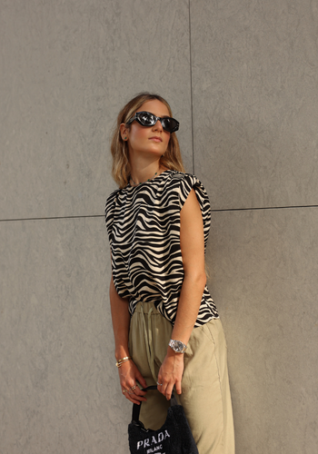 Zebra print satin sleeveless blouse