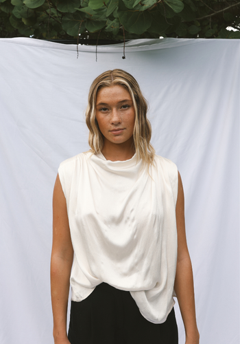 Sleeveless satin blouse with shoulder pads