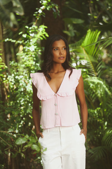 Pink sleeveless blouse
