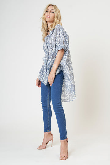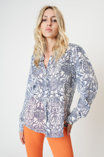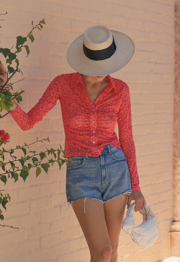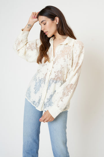 Long sleeve mesh buttoned top.